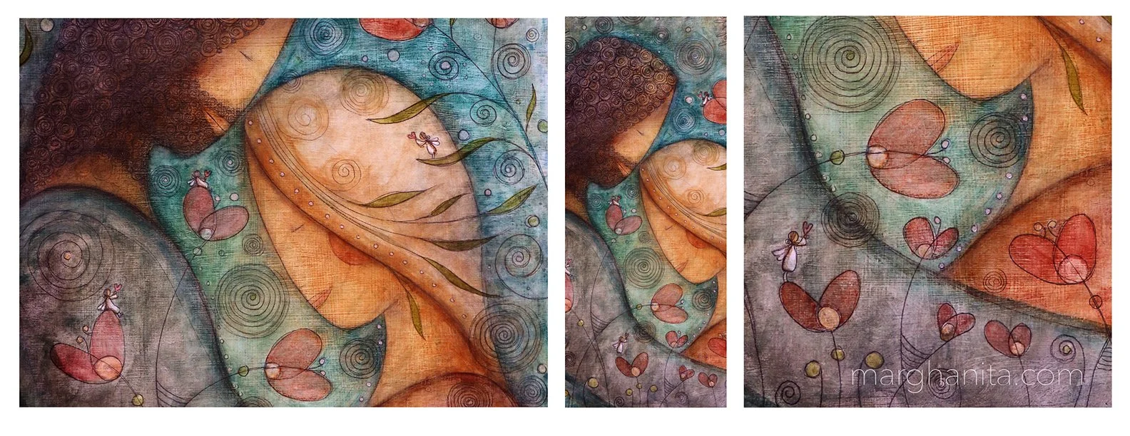 I sat with the sadness then I looked at my couple in the painting wrapped in love, surrounded in beauty and tranquility of the garden.