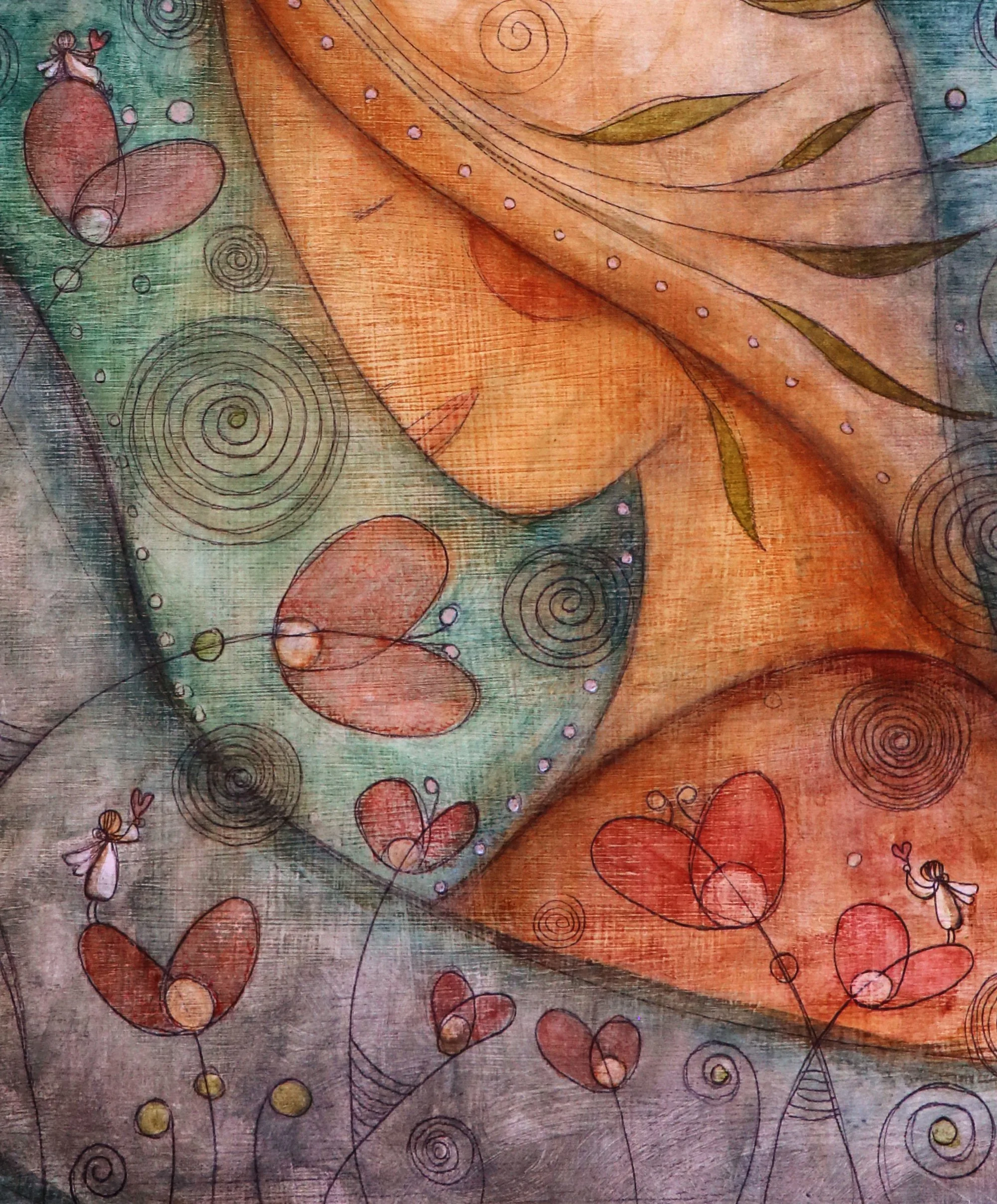 This was an incredibly spiritual and healing piece of artwork to paint. At one point while listening to a piece of music (Are we still here) the words sank deep into my heart and I felt great sadness as I paused to think about resent events.